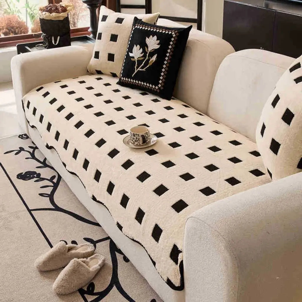 Monroe Checkered Non-Slip Soft Plush Sofa Covers